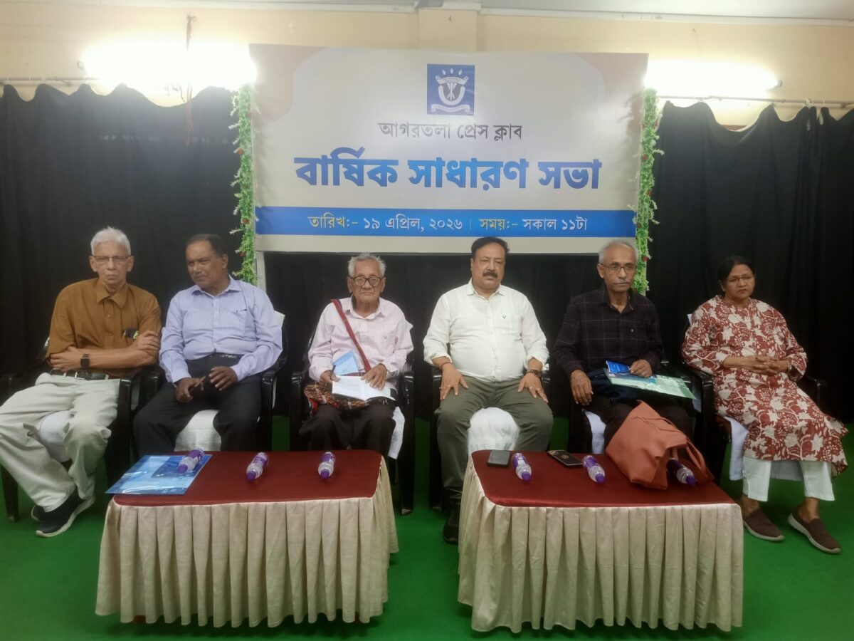 আগরতলা।। আগরতলা প্রেস ক্লাবের বার্ষিক সাধারণ সভা রবিবার ১৯ এপ্রিল, ২০২৬ তারিখে অনুষ্ঠিত হয়েছে।সদ্য প্রয়াত দুই সাংবাদিক তপন চক্রবর্তী এবং নন্দন চক্রবর্তীকে শ্রদ্ধা জানানোর মধ্যে দিয়ে শুরু হয় সভার কাজ।