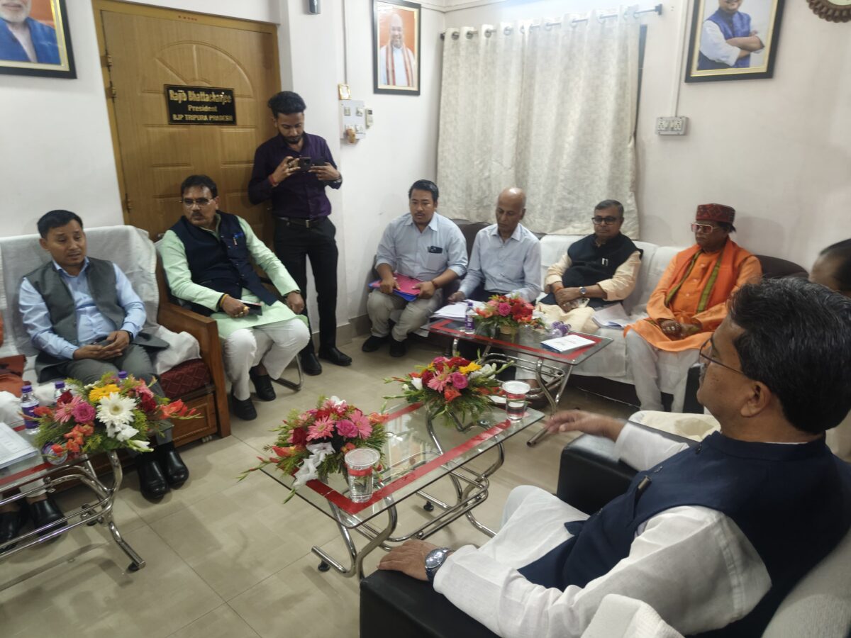 আগরতলা।।রাজ্যের রাজনৈতিক মহলে জোর চাঞ্চল্য তৈরি করে বিজেপি প্রদেশ কার্যালয়ে অনুষ্ঠিত হলো আসন্ন এডিসি নির্বাচনকে কেন্দ্র করে গুরুত্বপূর্ণ বৈঠক।এই বৈঠকে উপস্থিত ছিলেন মুখ্যমন্ত্রী ডঃ মানিক সাহা সহ দলের শীর্ষ নেতৃত্ব।বৈঠক শেষে সংবাদ মাধ্যমের মুখোমুখি হয়ে মুখ্যমন্ত্রী ডঃ মানিক সাহা জানান, খুব শীঘ্রই বিজেপি তাদের প্রার্থী তালিকা ঘোষণা করবে। তিনি বলেন, আগামীকালই প্রার্থী তালিকা প্রকাশ করা হতে পারে।পাশাপাশি মুখ্যমন্ত্রী আরও স্পষ্ট করে দেন, এডিসি নির্বাচনে বিজেপি সবকটি অর্থাৎ ২৮টি আসনেই প্রতিদ্বন্দ্বিতা করবে।রাজনৈতিক বিশ্লেষকদের মতে, এই ঘোষণার পর রাজ্যের রাজনৈতিক লড়াই আরও তীব্র হতে চলেছে।এখন সকলের নজর আগামীকালের প্রার্থী তালিকা ঘোষণার দিকে।