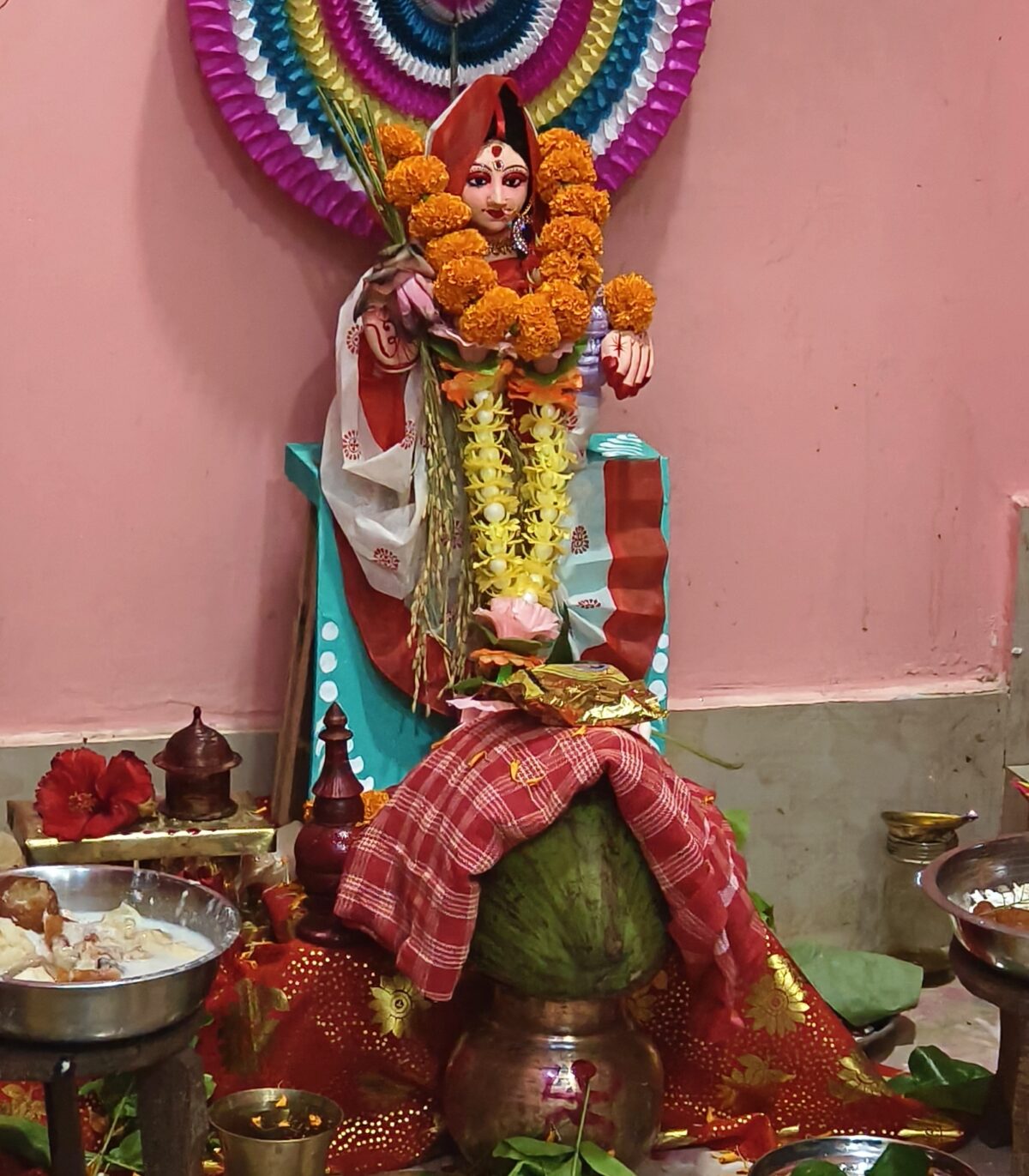 এদিকে গৃহকর্তাদের অনেকেই তখনো বাজারমুখী। নৈবদ্যা সাজিয়ে ধুপ দীপ জ্বালিয়ে চলে দেবীর আরাধনা। অনেক বাড়িঘরে আবার জজ্ঞও হয়। প্রথা অনুযায়ী অনেকেই লক্ষী পুজোয় কাঁসর ঘন্টা বাজান না। বৈদিক মন্ত্রোচ্চারণের মধ্যে দিয়ে পুরোহিত ধনের অধিষ্ঠাত্রী দেবীর পূজা করেন।
