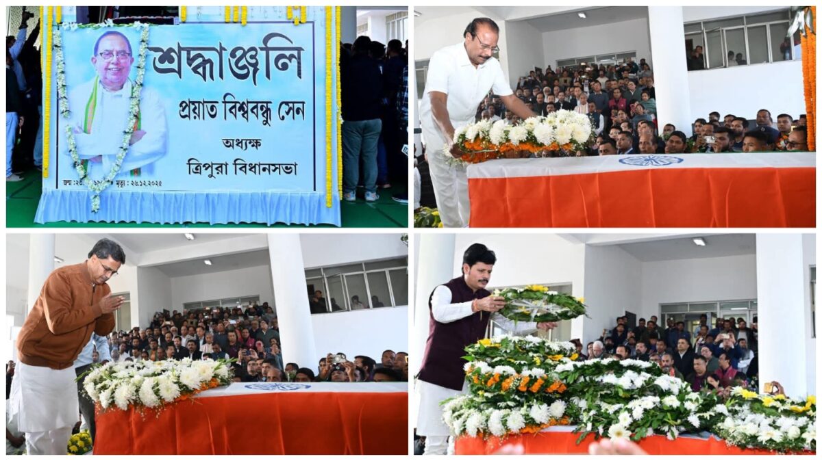 আগরতলা : প্রয়াত ত্রিপুরা রাজ্য বিধানসভার অধ্যক্ষ বিশ্ববন্ধু সেনকে শেষ শ্রদ্ধা জানানো হল ত্রিপুরা বিধানসভা ভবনে।
