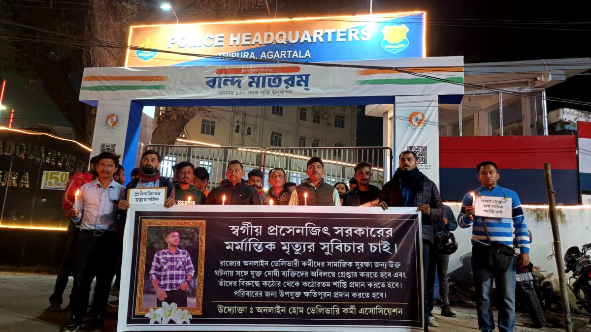 আগরতলা :প্রসেনজিৎ সরকারের মৃত্যুর ঘটনায় সুষ্ঠু তদন্ত ও দোষীদের দৃষ্টান্তমূলক শাস্তির দাবিতে ধর্মনগর থানায় শ্রমিক মনিটরিং সেলের নেতৃত্ব!ডেলিভারি কর্মী প্রসেনজিৎ সরকারের অস্বাভাবিক মৃত্যুর ঘটনায় সোমবার ধর্মনগরে এসে ধর্মনগর থানার অফিসার ইনচার্জ মীনা দেববর্মার সঙ্গে সাক্ষাৎ করেন ত্রিপুরা রাজ্য মজদুর মনিটরিং সেলের নেতৃত্ব।