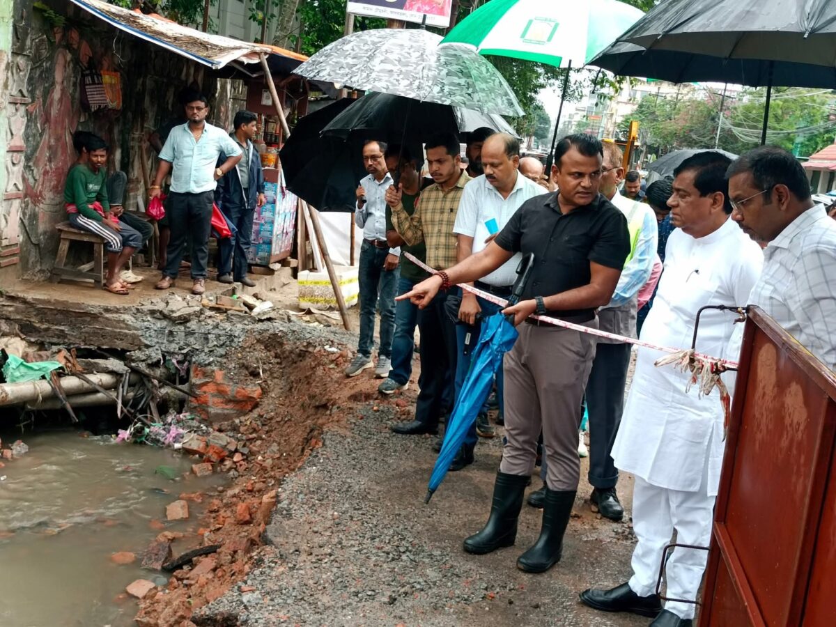 শনিবার বৃষ্টি উপেক্ষা করেই ড্রেন নির্মাণের কাজ পরিদর্শন করলেন মেয়র দীপক মজুমদার।সঙ্গে ছিলেন স্মার্ট সিটি প্রকল্পের সি ই ও শৈলেশ কুমার যাদব সহ সংশ্লিষ্ট আধিকারিকরা। এদিন মেয়র আগরতলা লক্ষী নারায়ন বাড়ি রোড এলাকায় রাস্তার পাশে কভার ড্রেন নির্মানের কাজ পরিদর্শনে যেন। বর্ষার সময়ে এই এলাকার রাস্তায় জমা জল যাতে সহজেই নিকাশি ব্যবস্থার মাধ্যমে সরানো যায়, তার জন্য এলাকায় বক্স কালভার্ট নির্মান করার জন্য প্রয়োজনীয় ব্যবস্থা গ্রহনের নির্দেশ দেন তিনি।