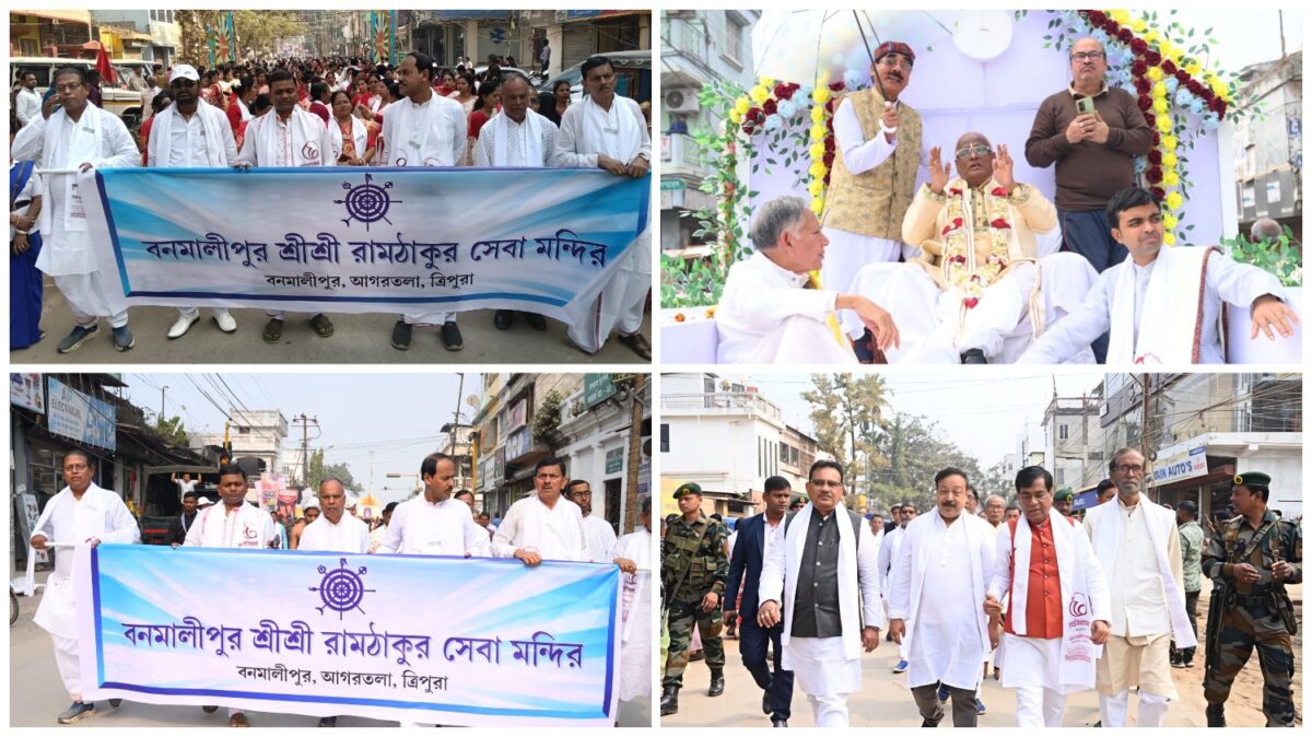 আগরতলা : আগরতলা রাম ঠাকুর সেবা আশ্রমের সুবর্ণ জয়ন্তী ও বার্ষিক প্রতিষ্ঠা দিবস উপলক্ষে শনিবার এক বর্ণাঢ্য ধর্মীয় রেলির আয়োজন করা হয়। এদিন সকাল থেকেই আশ্রম প্রাঙ্গণে অগণিত ভক্তবৃন্দের সমাগম ঘটে এবং উৎসবমুখর পরিবেশে রেলিটি শহরের বিভিন্ন পথ পরিক্রমা করে।