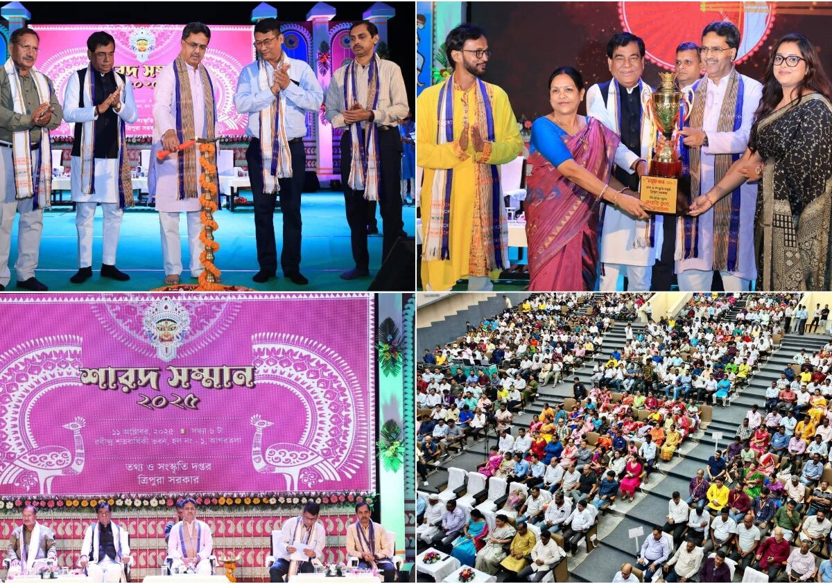 আগরতলা।।এবছরের শারদীয় উৎসব মানুষের সহযোগিতার মধ্য দিয়ে সুন্দর ও শান্তিপূর্ণভাবে সম্পন্ন হয়েছে। শারদীয় উৎসবে মানুষের সুন্দর চিন্তা ও মননের উচ্ছাস পরিলক্ষিত হয়। আগরতলা শহরের পাশাপাশি রাজ্যের বিভিন্ন জেলার জনজাতি এলাকাগুলিতেও উৎসাহের সাথে দুর্গাপূজা সম্পন্ন হয়েছে। আজ রবীন্দ্র শতবার্ষিকী ভবনে তথ্য ও সংস্কৃতি দপ্তরের উদ্যোগে শারদ সম্মান-২০২৫ অনুষ্ঠানের উদ্বোধন করে মুখ্যমন্ত্রী প্রফেসর (ডা) মানিক সাহা একথা […]