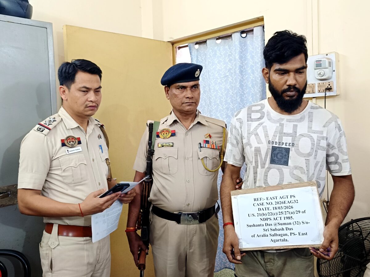 আগরতলা:মুখ্যমন্ত্রীর স্বপ্ন নেশা মুক্ত ত্রিপুরা রাজ্য গড়তে রাজ্য আরক্ষা প্রশাসন ধারাবাহিক নেশা বিরোধী অভিযান জারি রেখেছে।তারই অঙ্গ হিসেবে গোপন খবরের ভিত্তিতে পূর্ব আগরতলা থানার পুলিশ আড়ালিয়া শালবাগান এলাকা থেকে ৬ দশমিক ২ গ্রাম ব্রাউন সুগার, ৮০০ ইয়াবা ট্যাবলেট, নগদ ৩২০০ টাকা ৩টি মোবাইল ফোন সহ এক যুবককের বাড়িতে আটক করে। গোপন সূত্রের ভিত্তিতে অভিযান চালিয়ে […]