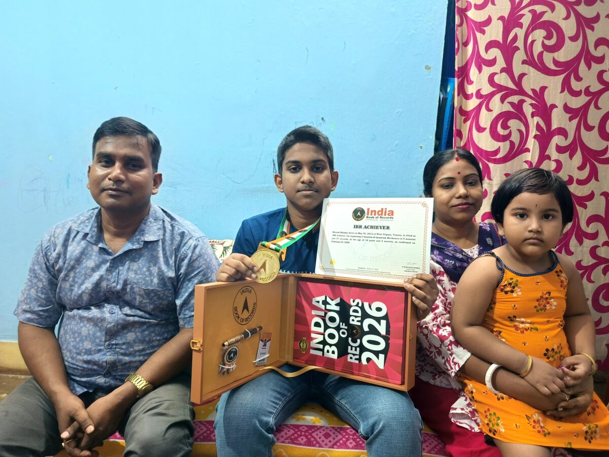 আগরতলা।।রেকর্ড গড়ল আগরতলার মৈনাক। আগরতলার নবম শ্রেণির ছাত্র মৈনাক মালাকার অল্প বয়সেই গড়ল নজির। মাত্র ১৪ বছর ৮ মাস বয়সে নিজের কৃতিত্বে জায়গা করে নিল Indian Book of Records-এ। আইবিআর সূত্রে জানা গেছে, মৈনাক মাত্র ৯ মিনিট ৫৭ সেকেন্ডে কোয়ান্টাম মেকানিক্সের ৯টি তত্ত্ব ব্যাখ্যা করে এই স্বীকৃতি অর্জন করেছে—যা এই বয়সে বিরল কৃতিত্ব। মৈনাক জানায়, […]