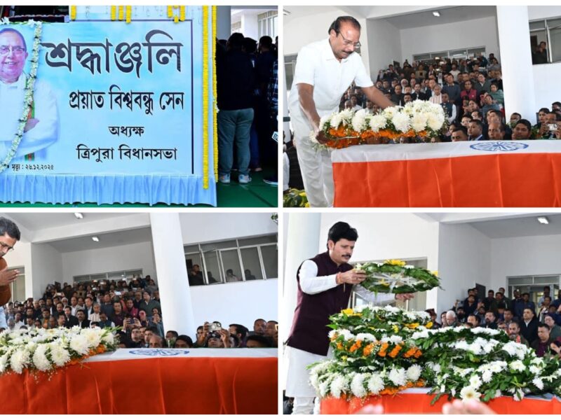 আগরতলা: ত্রিপুরা বিধানসভার অধ্যক্ষ বিশ্ববন্ধু সেনের অকাল প্রয়াণ আমাদের জন্য অপূরণীয় ক্ষতি। আজ বিধানসভার অধ্যক্ষ স্বর্গীয় বিশ্ববন্ধু সেনের মরদেহ বিধানসভা প্রাঙ্গণে পৌঁছালে তাঁকে শেষ শ্রদ্ধা নিবেদন করে একথা বলেন মুখ্যমন্ত্রী প্রফেসর ডাঃ মানিক সাহা। মুখ্যমন্ত্রী বলেন, ত্রিপুরার উন্নয়নে অসামান্য অবদান রাখা এক মহান ব্যক্তিত্ব ও ব্যতিক্রমী নেতা হিসেবে তিনি সর্বদা মানুষের হৃদয়ে স্মরণীয় হয়ে থাকবেন। […]