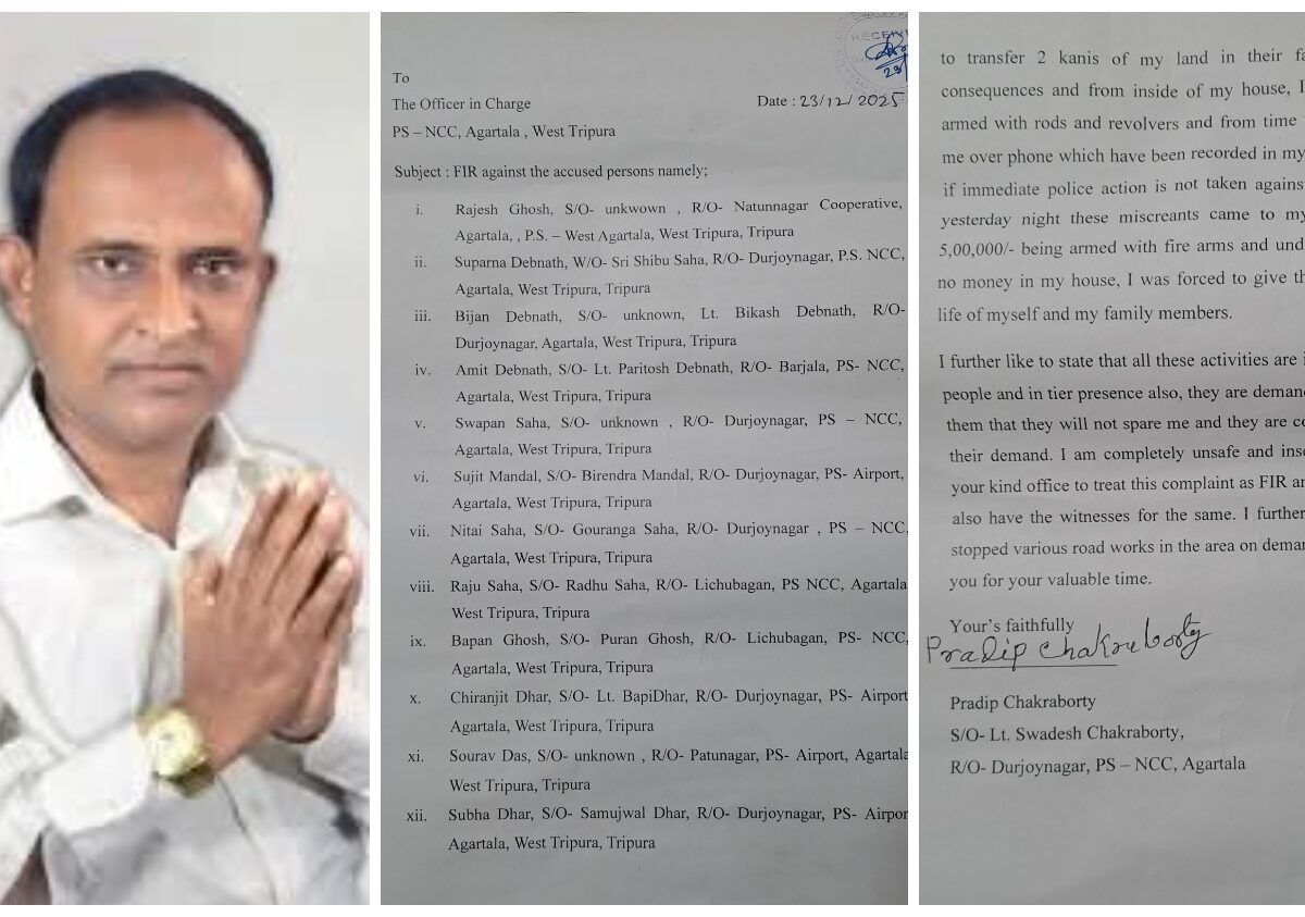 আগরতলা ।। অবশেষে ত্রিপুরার বিভিন্ন এলাকাবাসীর চাপে, ক্ষমার রাস্তা থেকে সরে এসে প্রদীপ চক্রবর্তী বাধ্য হলেন ২০০০ থেকে ২০২৫ সাল পর্যন্ত বিশাল সমাজদ্রোহীদের বিরুদ্ধে এফ আই আর করতে। গতকাল রাত দশটায় এনসিসি থানায় অরাজনৈতিক জনপ্রতিনিধি ২৫ বছরের দুর্জয় নগরের যে মাফিয়া চক্র সক্রিয় ছিল, তাদের বিরুদ্ধে এনসিসি থানায় মামলা রুজু করা হয়েছে । এই খবর […]